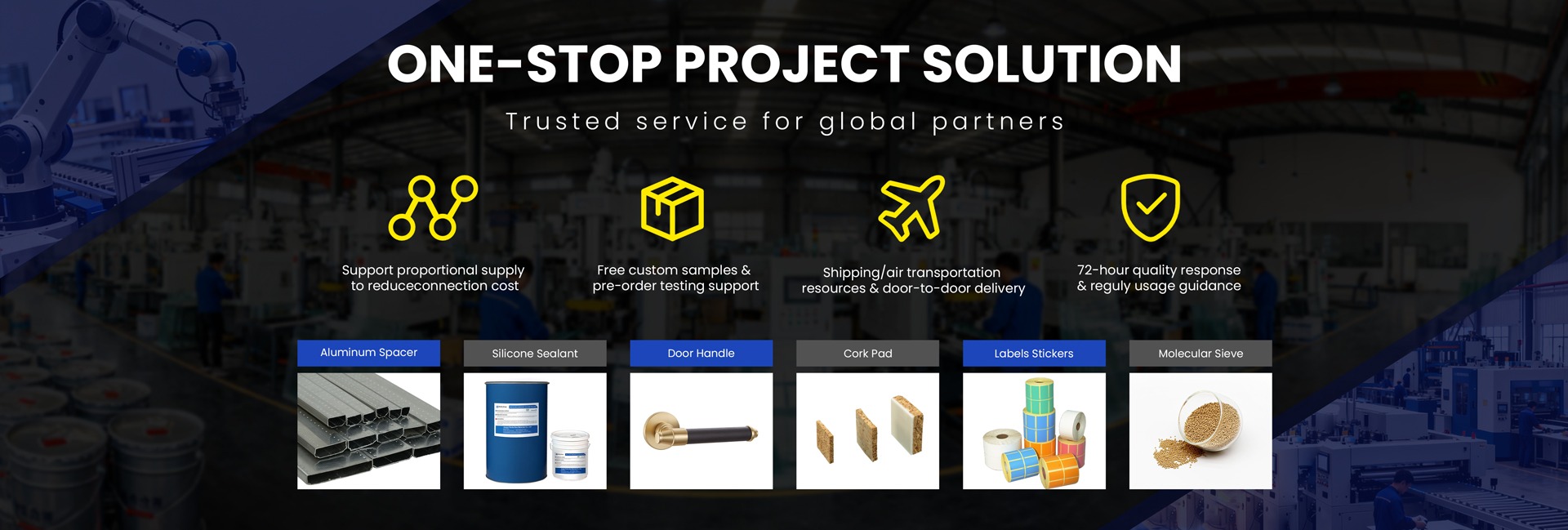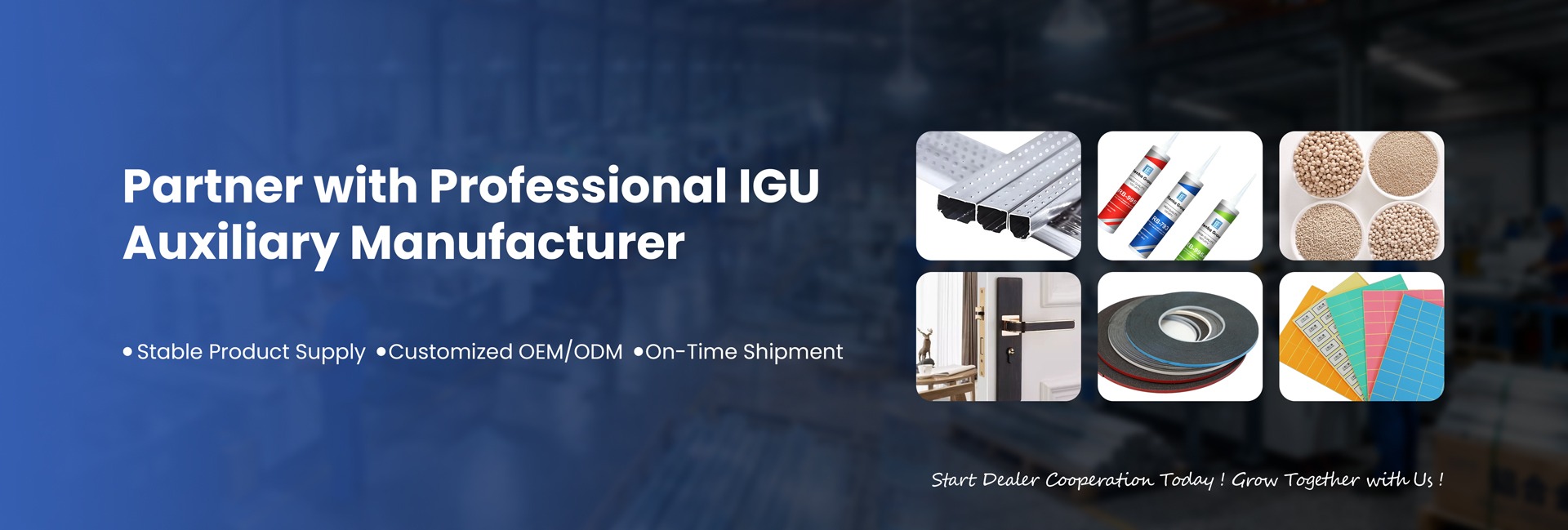 मुख्य उत्पादों: एल्यूमीनियम स्पेसर, दो-घटक सिलिकॉन सीलेंट, आणविक सिव, कॉर्क गैसकेट, लेपित ब्यूटाइल गोंद एल्यूमीनियम स्पेयर